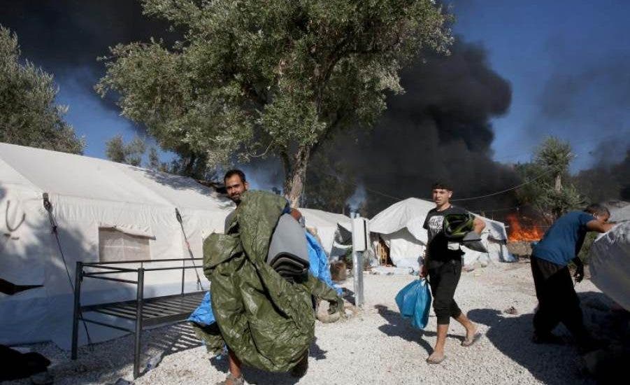 Según informa la televisión pública ERT, los incendios se han producido en el olivar que rodea las instalaciones y están quemando las pocas carpas que quedaban.