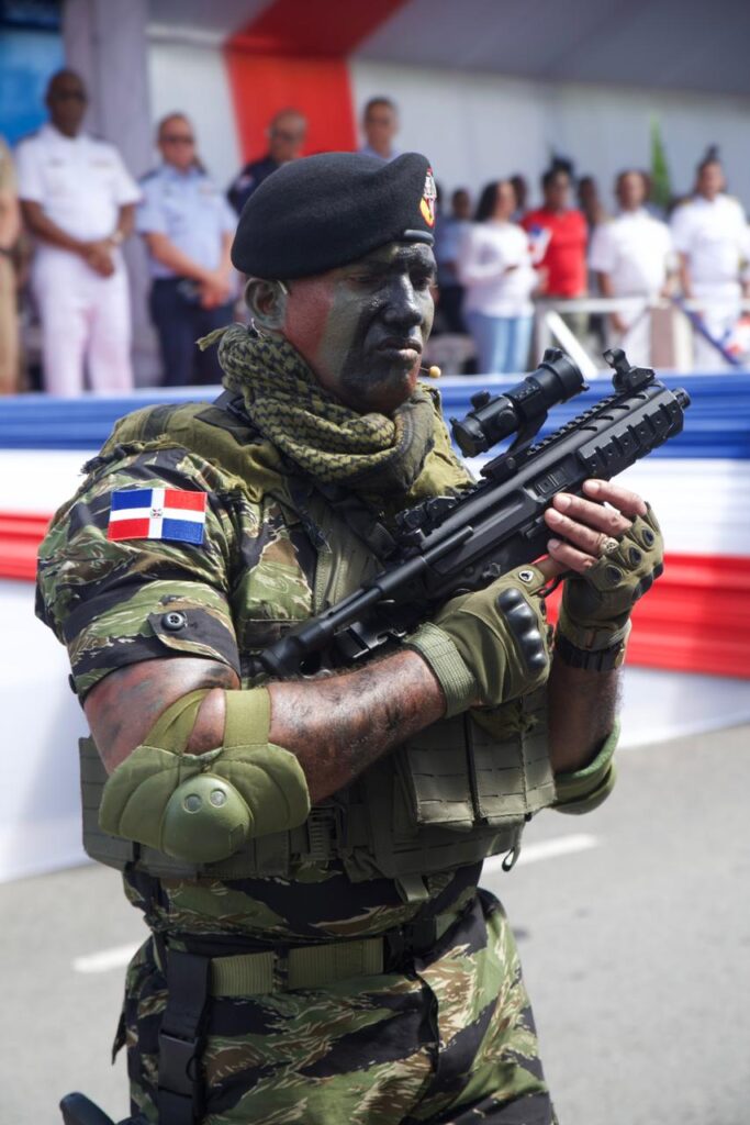 El desfile inició con la participación de estudiantes de diversos centros educativos de la provincia Duarte seguidos por cuerpos élites del Ejército de República Dominicana, unidades especiales de la Fuerza Aérea de República Dominicana y fuerzas especializadas de la Policía Nacional, incluyendo los Lince y el SWAT.