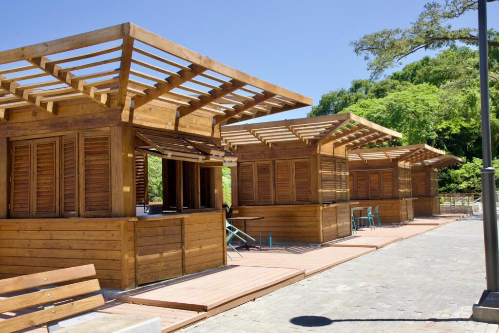 El proyecto incorpora 79 locales comerciales: 57 destinados a la preparación y venta de alimentos, 16 a la comercialización de artesanía y regalos, además de 2 bares y 4 quioscos, buscando diversificar la experiencia del visitante y fortalecer la economía local.