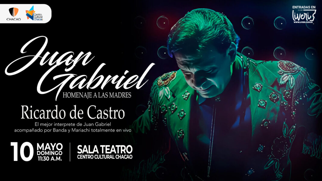 El próximo domingo 10 de mayo, a las 11:30 a.m., la Sala Teatro del Centro Cultural Chacao resonará con la música del recordado astro de la canción, cuando Ricardo De Castro acompañado de su mariachi y banda rindan un sentido homenaje al cantautor mexicano más importante de los últimos 50 años.